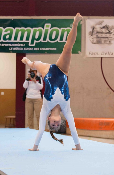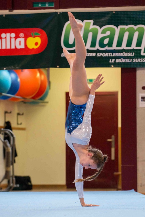 Die K7 Konkurrenz zeigt eine erfreulich grosse Startliste. Hier hilft sicherlich auch das bevorstehende ETF für die steigende Anzahl der Teilnehmerinnen. Erstmals seit den Schweizermeisterschaften vom letzten November ist Sandra Garibay wieder auf dem Wettkampfplatz. „Ich freue mich auf den Wettkampf, bin aber schon etwas nervös ob meine neue Bodenübung klappt.“ Der gestreckte Schraubensalto rückwärts passt dann auch noch nicht ganz perfekt. Aber die restlichen dynamischen Verbindungen und Sprünge lassen nicht nur das Publikum begeistern. Auch Kaya Dimmler zeigt einen tollen Wettkampf. Sie findet sich in der Eliteklasse immer besser zurecht und bestätigt ihren erfreulichen Training-Stand mit dem 7. Rang in diesem Wettkampf. Sandra (1. Rang, 38.40) gewinnt vor Paciane Bo Studer (TZN Nidwalden, 37.70) und Yvana Riebli (Geräteriege Kerns, 36.80) die Goldmedaille.
