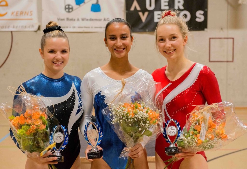 Nach einer längeren verletzungsbedingten Pause ende des letzten Jahres ist Kim an ihrem zweiten Wettkampf in diesem Jahr zurück auf dem Podest. Sie verdeutlicht mit eindrücklichen Übungen, dass mit ihr diese Saison wieder gerechnet werden soll: Gold mit 37.65 Punkten. Mit Larissa Bänninger (2. Rang, 37.60) und Noana Küng (3. Rang, 37.55) folgen ihr ihre zwei Vereinskolleginnen dicht auf den Fersen.