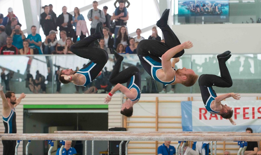 Bei den Sprüngen ist das neue Programm erst grad fertig einstudiert und wenige Wochen im Trainingsmodus laufend. Von den bisherigen vier hat der BTV auf sechs Minitramps erhöht und entsprechend mehr Springerinnen und Springer am Start. Die 9.75 Punkte aus der Vorrunde kommen dann auch etwas überraschend, hat doch Leiter Sandro Gasser im Feedback schon noch einige Hinweise für Verbesserungen ausgemacht. Das Finale läuft wesentlich besser und zeigt das Potential dieser dynamischen Sprungvorführung. Der STV Wettingen (9.90) gewinnt vor dem BTV Luzern (9.83) und dem STV Neuenhof (9.60) diese Disziplin.