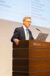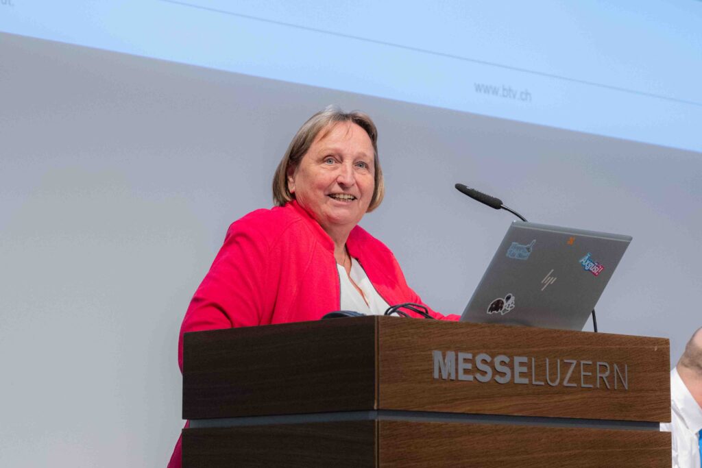 Luzern, 7. Dezember 2023. Die Generalversammlung mit 117 Personen findet im Forum der Messe Luzern statt. Bereits zum dritten Mal wird an der GV ein Abendessen serviert. Nach der Abstimmung zum DV- und GV-Protokoll und dem Jahresbericht der Co-Präsidenten gilt es, eine Statutenänderung anzunehmen. Schwerpunkt dabei ist ein Ethik-Artikel und die Präzisierung der Mitgliederkategorien bzw. des Alters bei Aufnahme in den BTV. Die dadurch einhergehende Anpassung der Daten in der Datenbank ergibt teilweise eine Verschiebung der Vereinsjahre, wodurch die Ehrung der Vereinstreue bei ein paar Mitgliedern nachgeholt wird. Mit 70 Jahren Vereinstreue dürfen sich dabei Alice Zehnder-Lötscher und Werner Bühler feiern lassen.