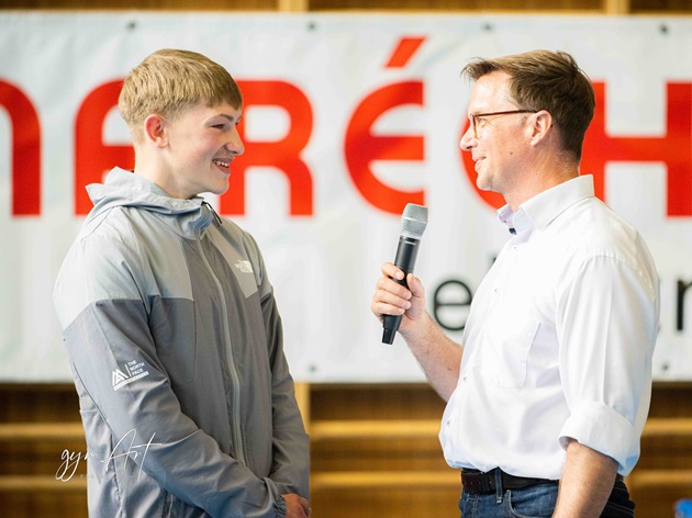 Bevor es mit dem turnerischen Programm weitergeht, interviewt der Co-Präsident und Speaker Peter Senn Nias Schurtenberger, der im 1. Lehrjahr bei Maréchaux, unserem Hauptsponsor, ist. Nias hatte die Erwartung, dass er in der Lehre gut unterstützt wird, interessante Arbeiten auch auf der Baustelle machen kann und nach der Lehre eine gute Perspektive hat. Alle diese Erwartungen wurden erfüllt, wenn nicht übertroffen.