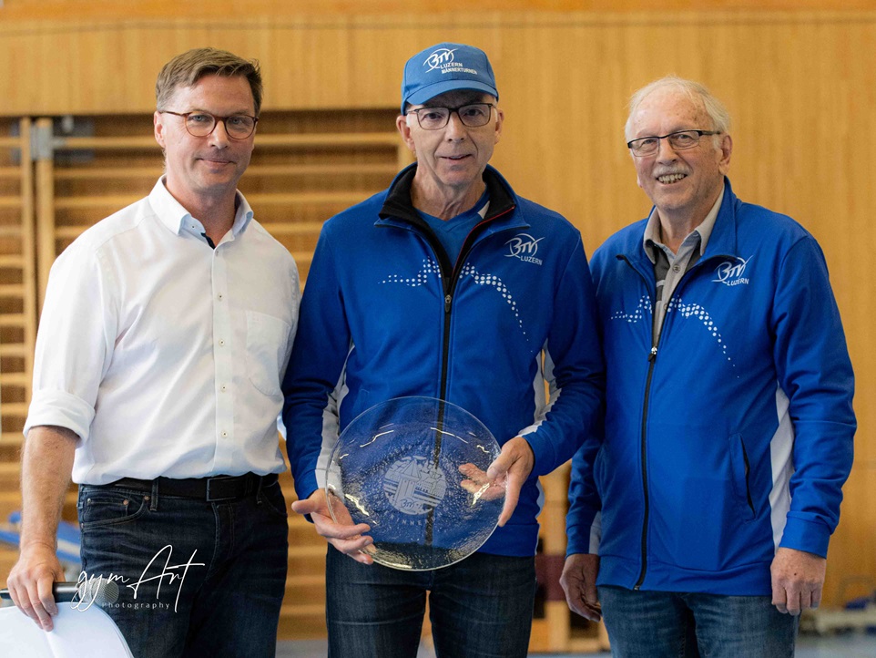 Turnerisch geht es grossflächig weiter mit den Geräteturnerinnen, bevor Peter Senn den Sepp-Stalder-Ideen-Preis vergeben darf. In diesem Jahr gebührt die Ehre einem Mitglied der Männerturner. Er ist ein Motivator in Person und gibt gerne neue Ideen an seine Kollegen weiter. Regelmässig besucht er Weiterbildungskurse beim Turnverband und entwickelt innovative Projekte, die riegenübergreifend oder auch für Aussenstehende geöffnet angeboten werden können. Sein überdurchschnittliches Engagement haben den Super-10-Kampf, den Postenmarsch durch die Stadt oder das Winterfit hervorgebracht.