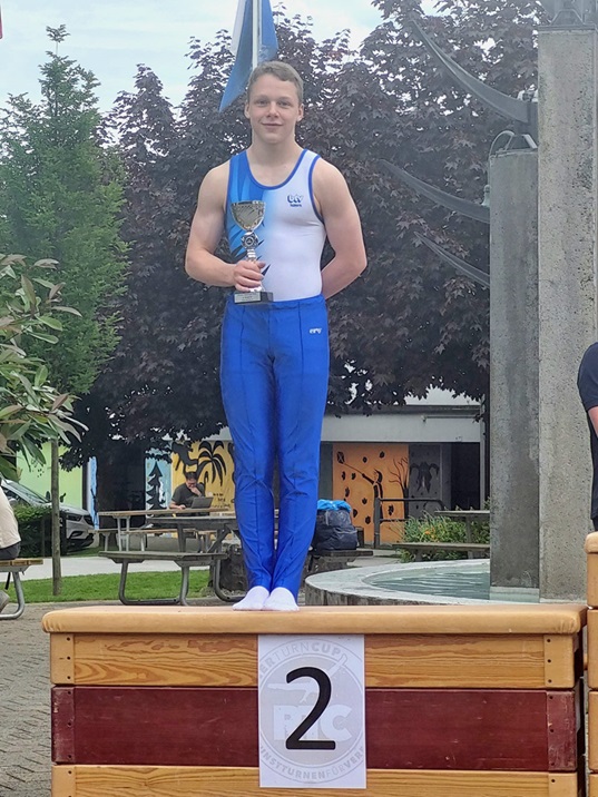 Rain, 26. Mai. 2024. Mit 2 Silbermedaillen ist Yanis Boog der erfolgreichste BTV Magnesianer beim Saisonfinale in Rain. 2. Rang im Wettkampf Offenes Programm (OP) und 2. Rang im Vereinswettkampf mit Andrin und Nathanael