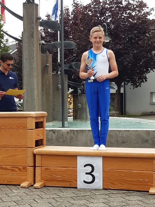 Nathanael Wobmann zeigt einen ausgeglichenen Wettkampf und turnt zum ersten Mal über die 70 Punkte-Marke. Dies reicht am Ende zur Bronze-Medaille. Die beste Leistung zeigt Nathanael am Reck, wo er die höchste Note aller Turner erzielt. Leider verletzt sich Andrin Buholzer beim Einturnen und so konnte hier das BTV-Team nicht um Medaillen in der Mannschaftswertung mitturnen.